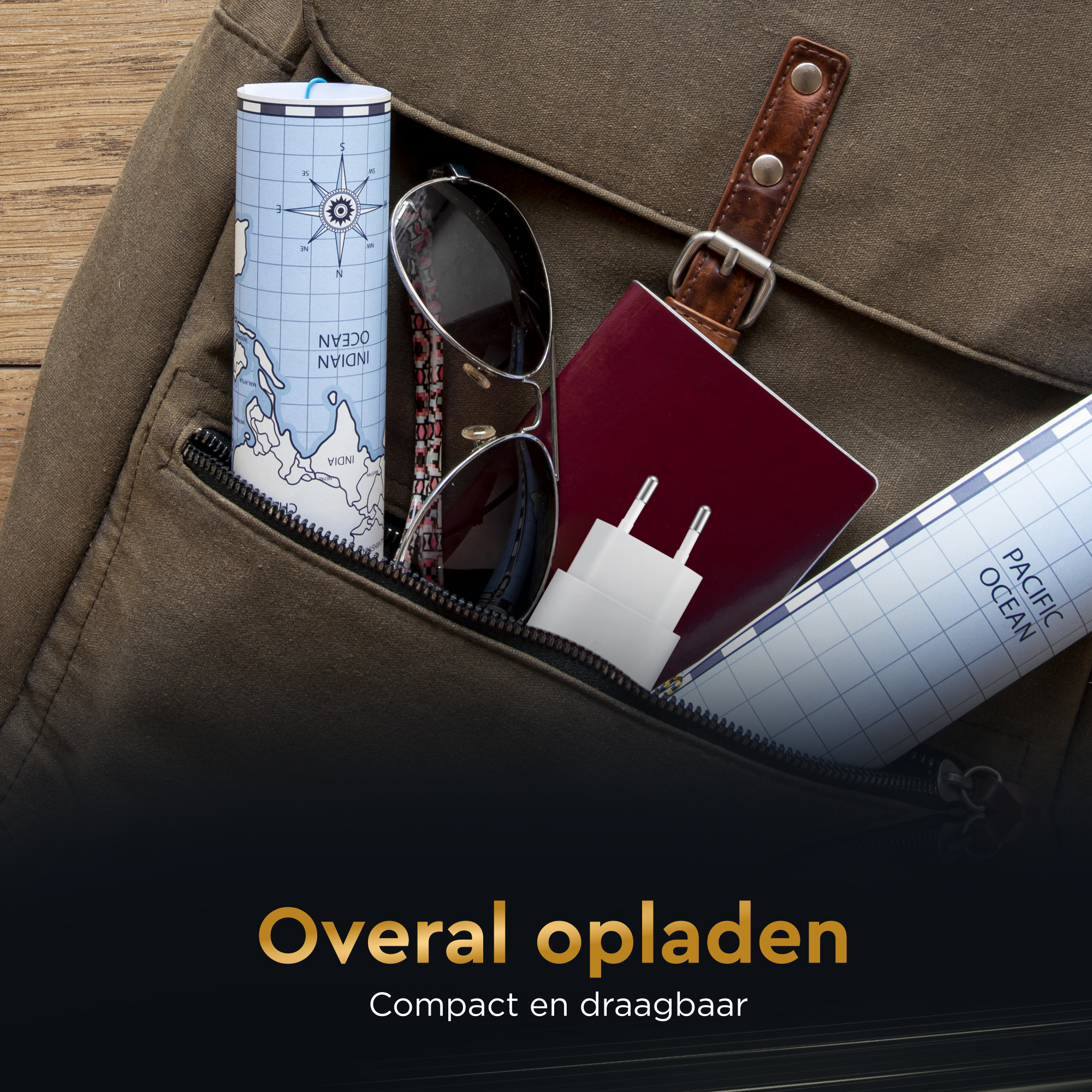 Dankzij het compacte formaat, kan jij de oplader gemakkelijk overal mee naar toenemen!