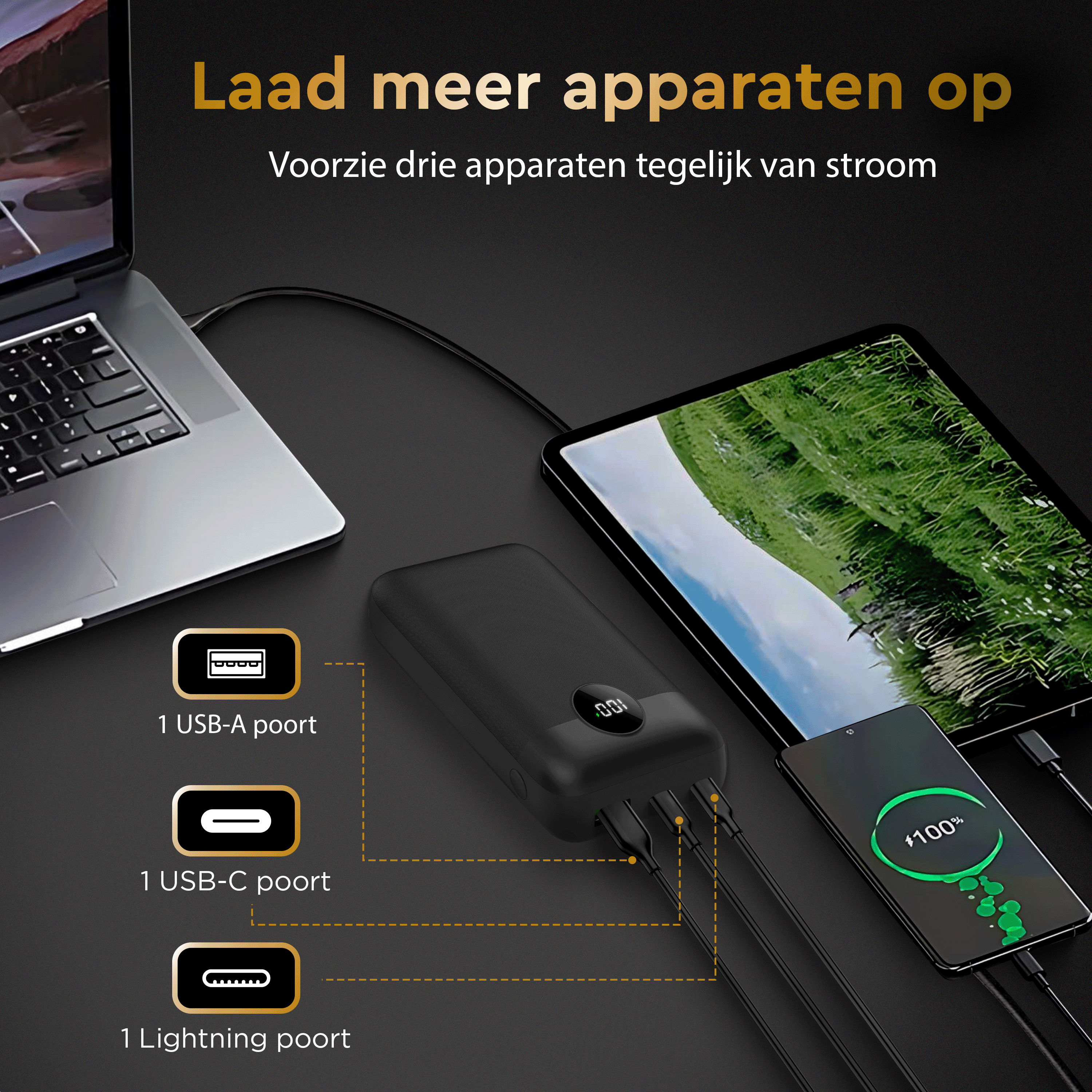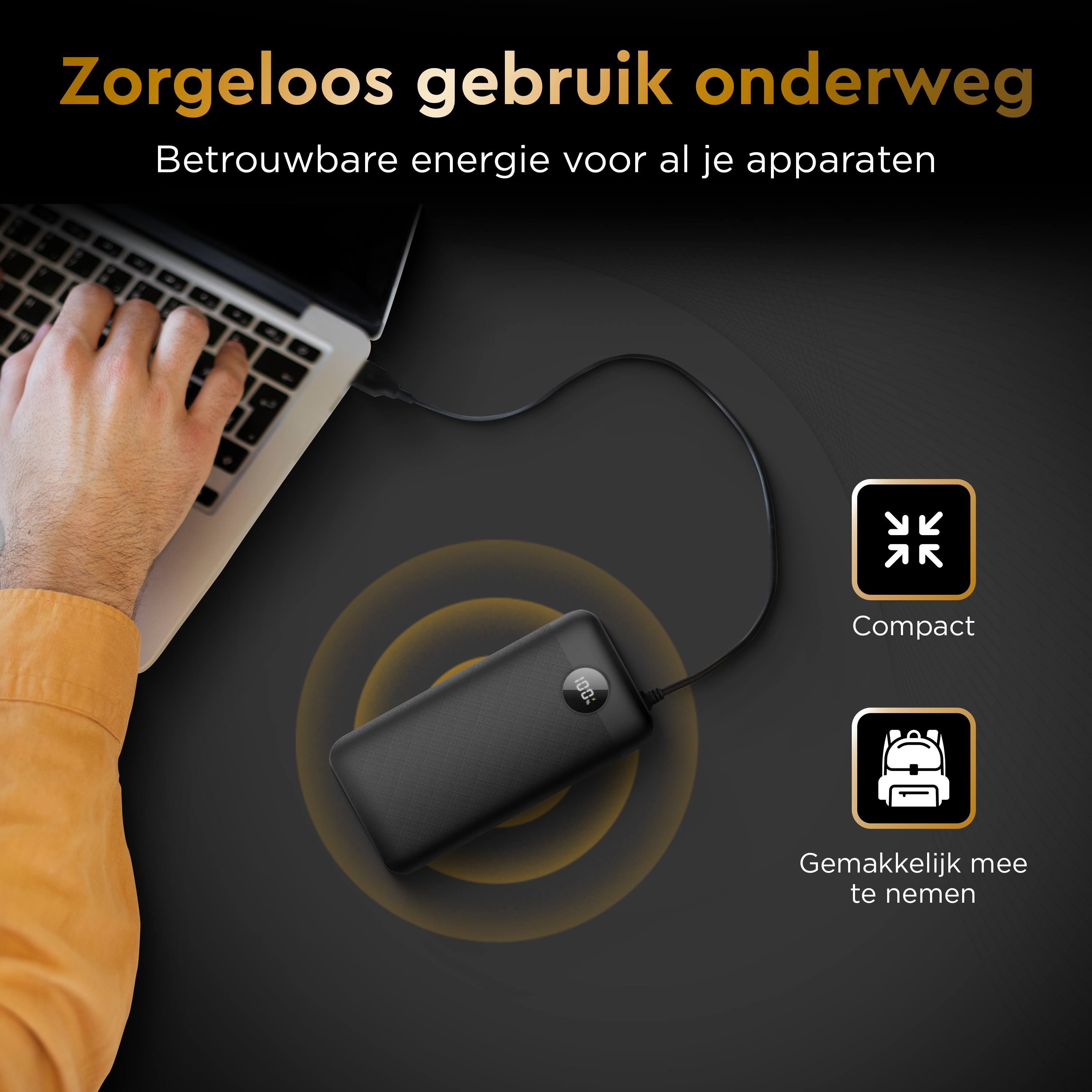 Mit unserer Powerbank mit 20.000 mAh bleiben Sie länger verbunden. Unbeschwertes Aufladen, wo immer Sie sind. Genug Energie für Ihren Urlaub oder Ihr Festival!