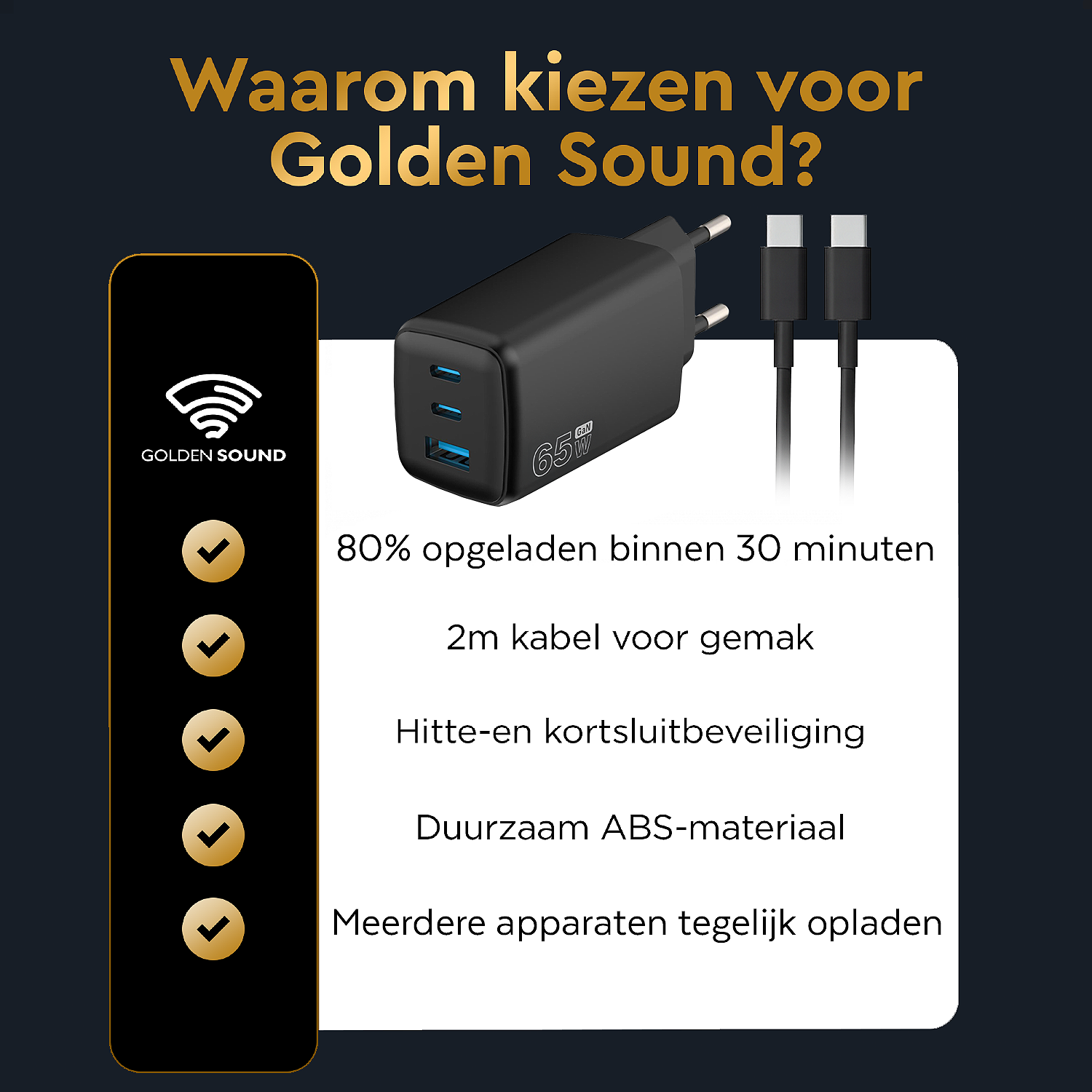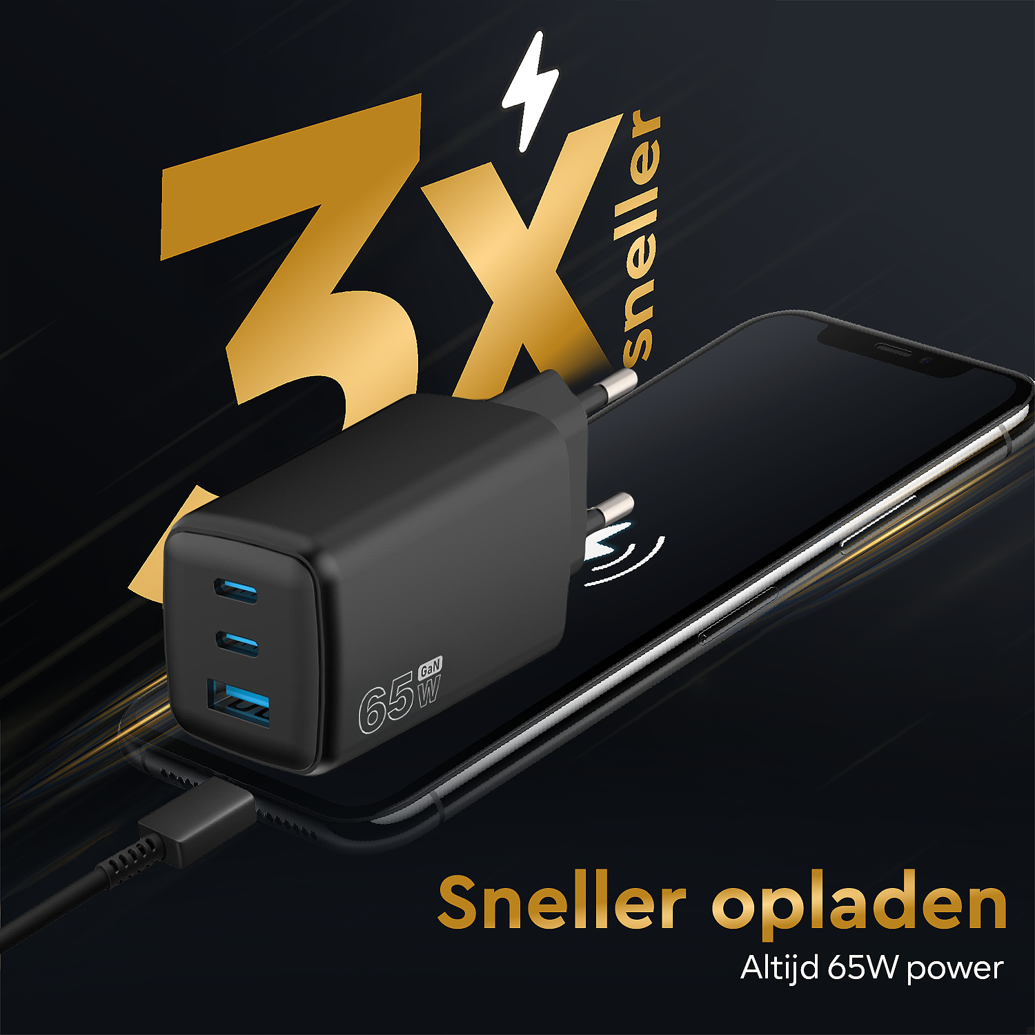 Bliksemsnel opladen met 65W!