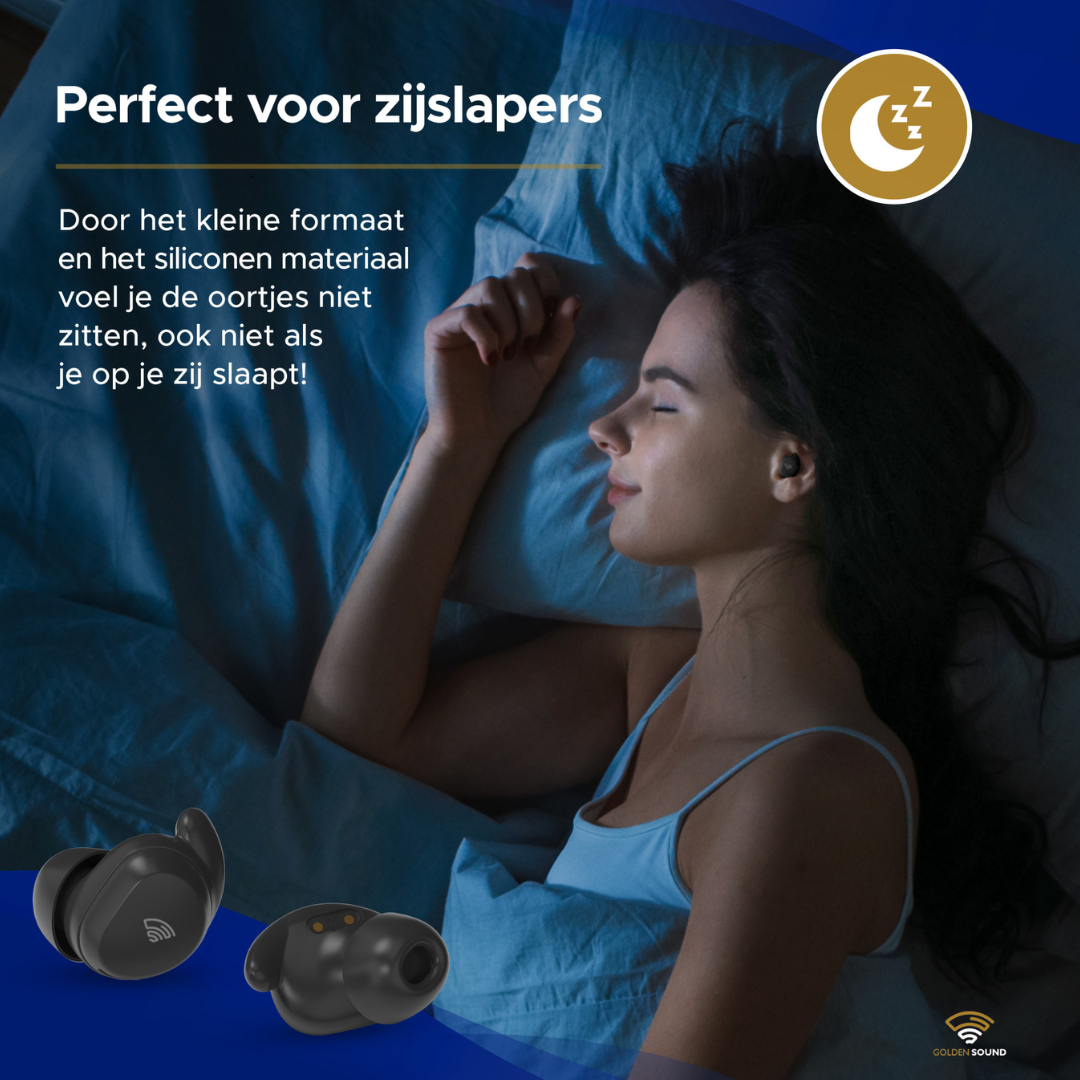 Met de Golden Sound - Sleep® slaap je als een roos. Door onze gepatenteerde noise cancelling technologie hoor je geen gesnurk, geen schreeuwende buren, en kun je lekker blijven slapen.